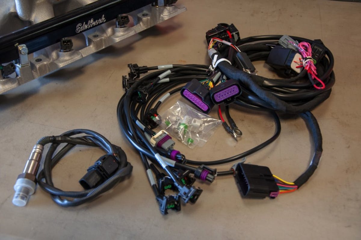 Next up, it was time to hook up the wiring harness. Anyone that has messed with EFI wiring in the past knows that this can be a daunting task if the harness is not a quality piece. Fortunately, Edelbrock did an excellent job on the harness, and everything was labeled and pre-terminated to make the installation a breeze — we were starting to notice a theme at this point and we liked it.