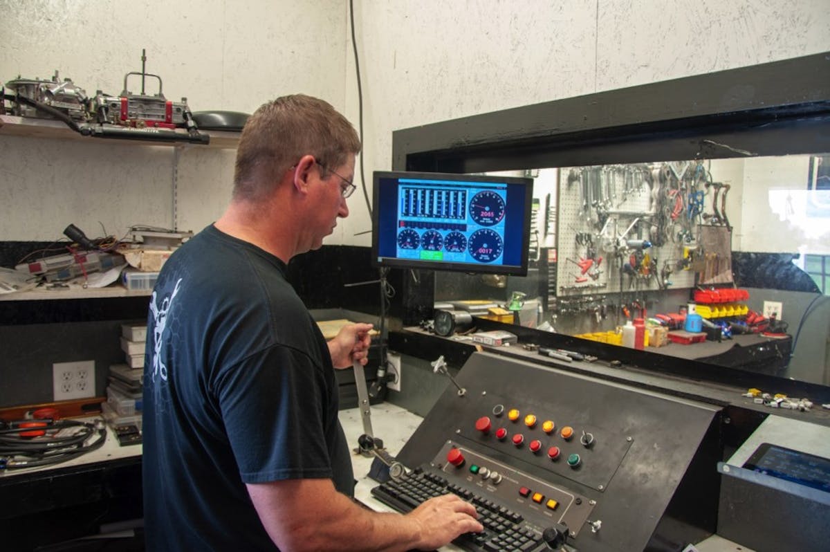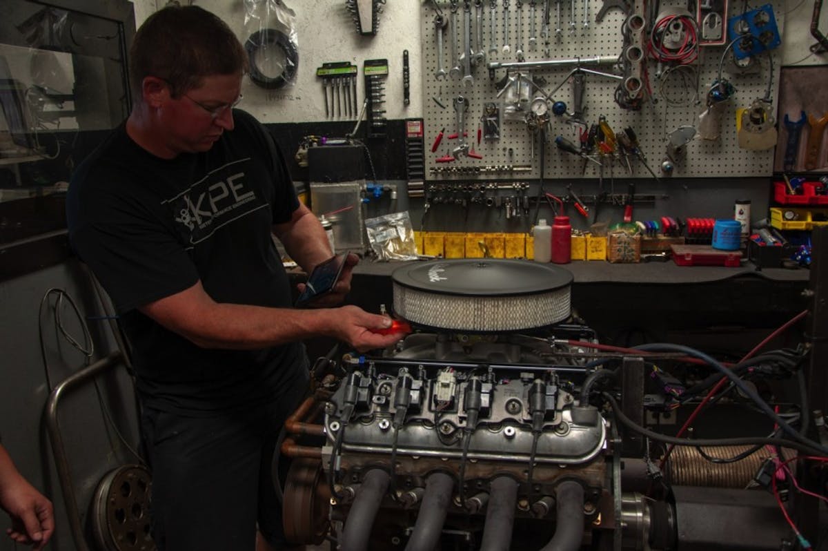 With our grimy test engine in the truck, we headed out to Keeter Performance Engineering (KPE) in Wichita Falls, Texas to test out the unit on their Superflow Dyno. Tommy Keeter, Owner of KPE, has years of experience with both mechanical injection, carburetors, and electronic fuel injection. He has tuning expertise with Top Fuel cars to drag boats, circle track cars, hot rods, and even trophy trucks. Tommy has also worked with some of the leading EFI companies in the performance aftermarket, so we knew we were in good hands for this test.