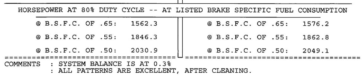 One of the big things you should be looking for from your injectors is flow consistency across the board. You want the system to be balanced with as little spread in the difference of flow rates as possible. Park says, “In a street car, the spread might go as high as four or five percent but, a race application like BlownZ, you want it under a two percent spread.” As you can tell from our before and after flow charts, BlownZ’s injectors did pick up some measurable amount of flow from RC’s cleaning and testing. Our overall system balance improved from 1.6 % to an absolutely stellar 0.3%. Additionally, the BlownZ’s injectors had their spray pattern upgraded from “Good” to “Excellent.”
