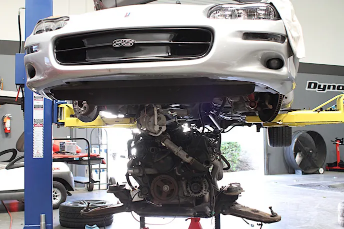 Dropping the engine was a relatively straightforward process, we won’t go over it in detail here, but suffice it to say that we had it out of our F-body in just a few hours. As we mentioned, this step isn’t technically necessary, but since we had the time—or so we thought—and the means, we decided it would be best.