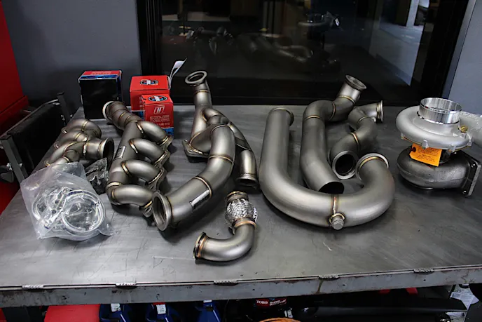 It seems a shame to cover up the beautiful stainless steel pipes. Hewn from .120-inch thick material, these systems can take a beating and keep right on going. Everything we needed to get the turbo on the car can be ordered with the kit or put together piece-meal, depending on your budget and plans for your car.