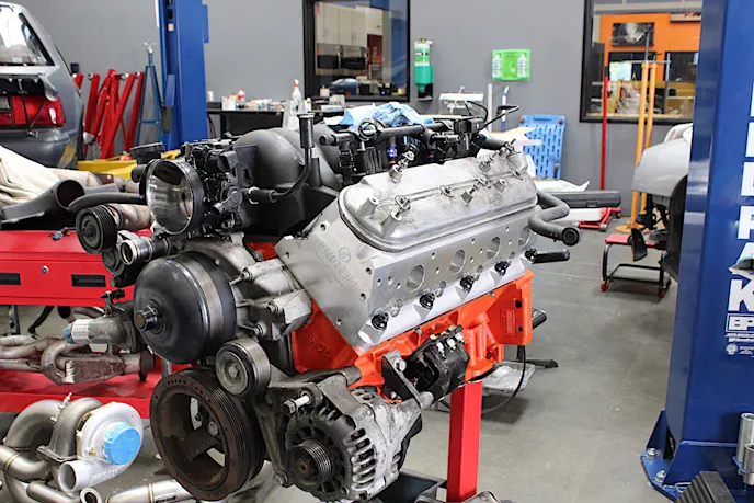 We will cover the build of the engine in another article, but here are a few of the specs in case you were curious. The engine is an iron-block 6.0L that has been punched out .030 inch making it a 370 cubic inch mill. It is fitted with forged aluminum pistons from Mahle and the rest of the rotating assembly is stock GM equipment. We topped it off with a set of Edelbrock CNC-215 heads we happened to have on hand which we secured with a new set of ARP head studs. Since the engine is newer than 2003, the head studs are all one length instead of the multiple-length bolts used in the previous year LS engines, including our wounded LS1.