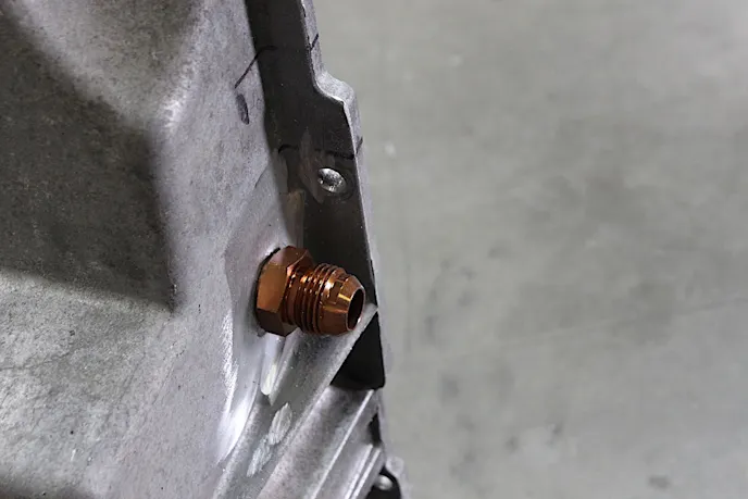 Many simply drill and tap the pan on the passenger side directly above the drain plug. In this area, the pan provides enough material for the tap to cut enough threads to adequately secure the drain. We decided to weld ours simply because we already had the engine out and accessible, providing us with a less leak-prone solution.