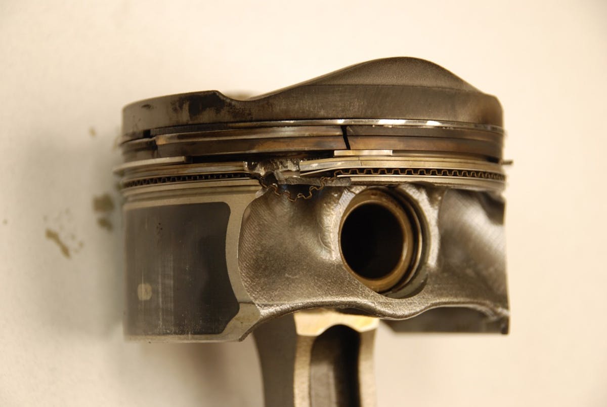 The raw fuel doesn’t have sufficient time to fully vaporize, due to a lack of turbulence and an abbreviated dwell time. This fuel can puddle between the upper piston ring and ring land. When mixed with the oil, it can produce this low octane compound. When the throttle pedal is punched after extended idling, this compound can pre-ignite, causing severe damage to the piston rings and lands.