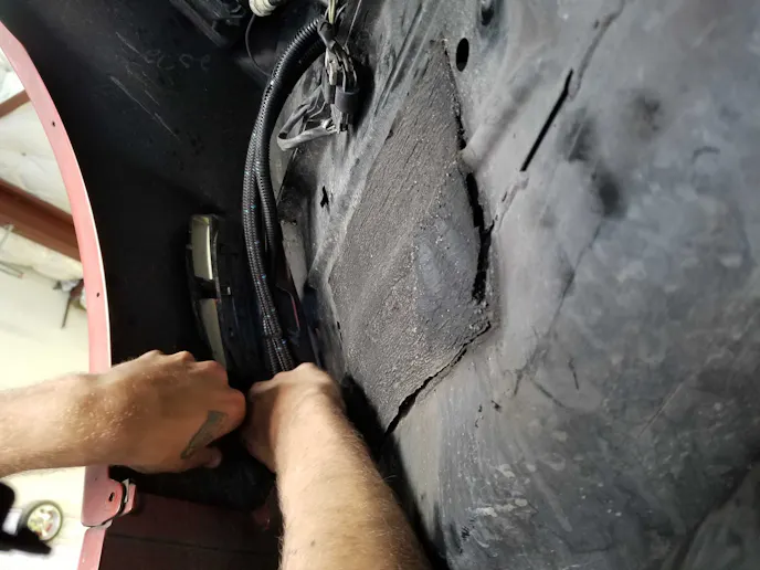 “We just ran them up the rocker – there’s a nice big opening where you can run the lines up behind the splash shield,” Petty says. “We taped the ends of the lines off so we wouldn’t get a bunch of debris in the lines and fished it through. After that, we found places to mount the fuel pressure regulator and the new Aeromotive fuel filter.”
