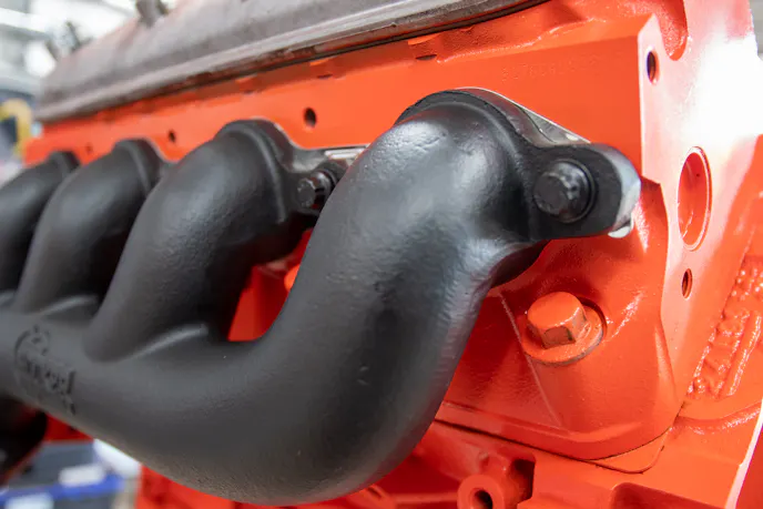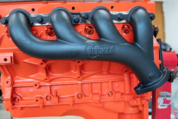 The first order of business was to get rid of the ugly factory cast truck manifolds. While these units can be cleaned up with a grinder and some elbow grease, the outlet side of these units doesn’t always point where they need to on an LS swap. Hooker Blackheart (PN 8502-3HKR) offers a nice set of cast iron manifolds that are much more friendly when it comes to an engine swap. They’re available in a natural or black finish and come with flanges for the exhaust system. We chose the black manifolds over the natural finish units for this project. The manifolds went on with no problem, and we used Mr. Gasket gaskets and 12-point ARP bolts to seal them up.