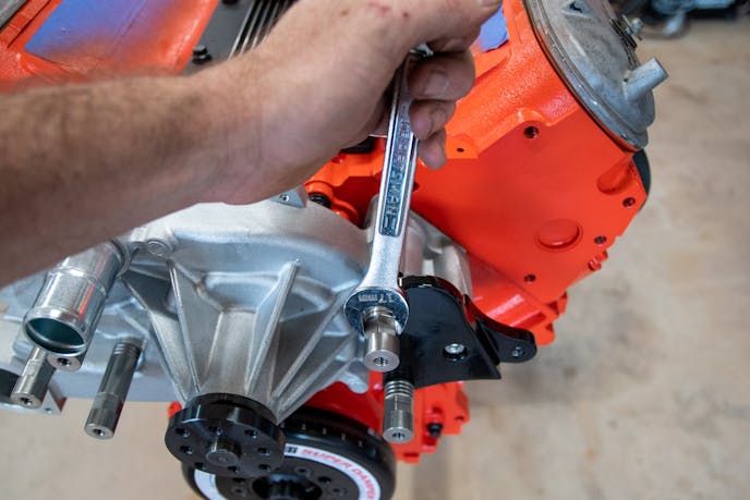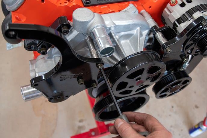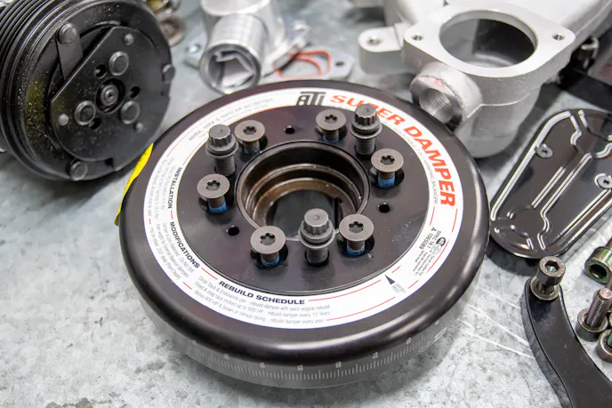 The next step was to install the supplied harmonic damper. Much to our surprise, the S-Drive included an ATI Super Damper. The Super Damper is a revolutionary design that offers an SFI 18.1 spec rating and has undergone severe testing. It’s so good that GM uses them on its ZZ572 GM crate engines as an OEM option. The Super Damper is just one of the exceptional components integrated with the S-Drive unit.
