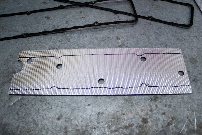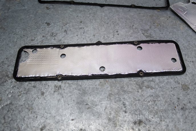 DEI offers a product called the LS Coil Pack Heat Shield. These are designed to solve the problem of coil failure from extreme engine heat. And since we’re covering the coils with SBC valve covers, we want to shield as much of that heat as possible. The LS Engine Coil Pack Heat Shields are a semi-rigid shield made from double-sided aluminum and high-temperature foam core, which insulates and reflects heat away to extend the coils’ life. The sheets come pre-cut for the factory LS coil packs, but are easy to trim.