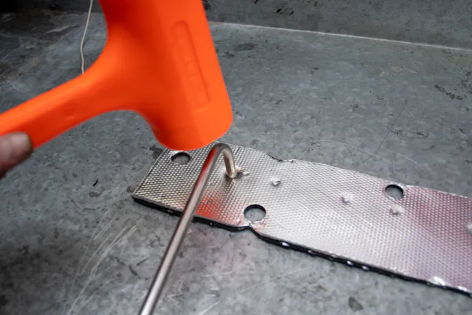 We used the small-block Chevrolet gaskets as a template and cut the excess off. After we had installed the studs in the valve cover adapters, we marked each shield before punching any holes. To make the holes, we used an old piece of stainless steel tubing and a dead blow hammer. This process made quick work of punching out the unwanted material, allowing the shields to slip down on the studs. And while the DEI shields will help protect the coils, this is only part of the equation. We will also need to create an air gap between the adapters and the SBC valve covers, which we will show in our next article.