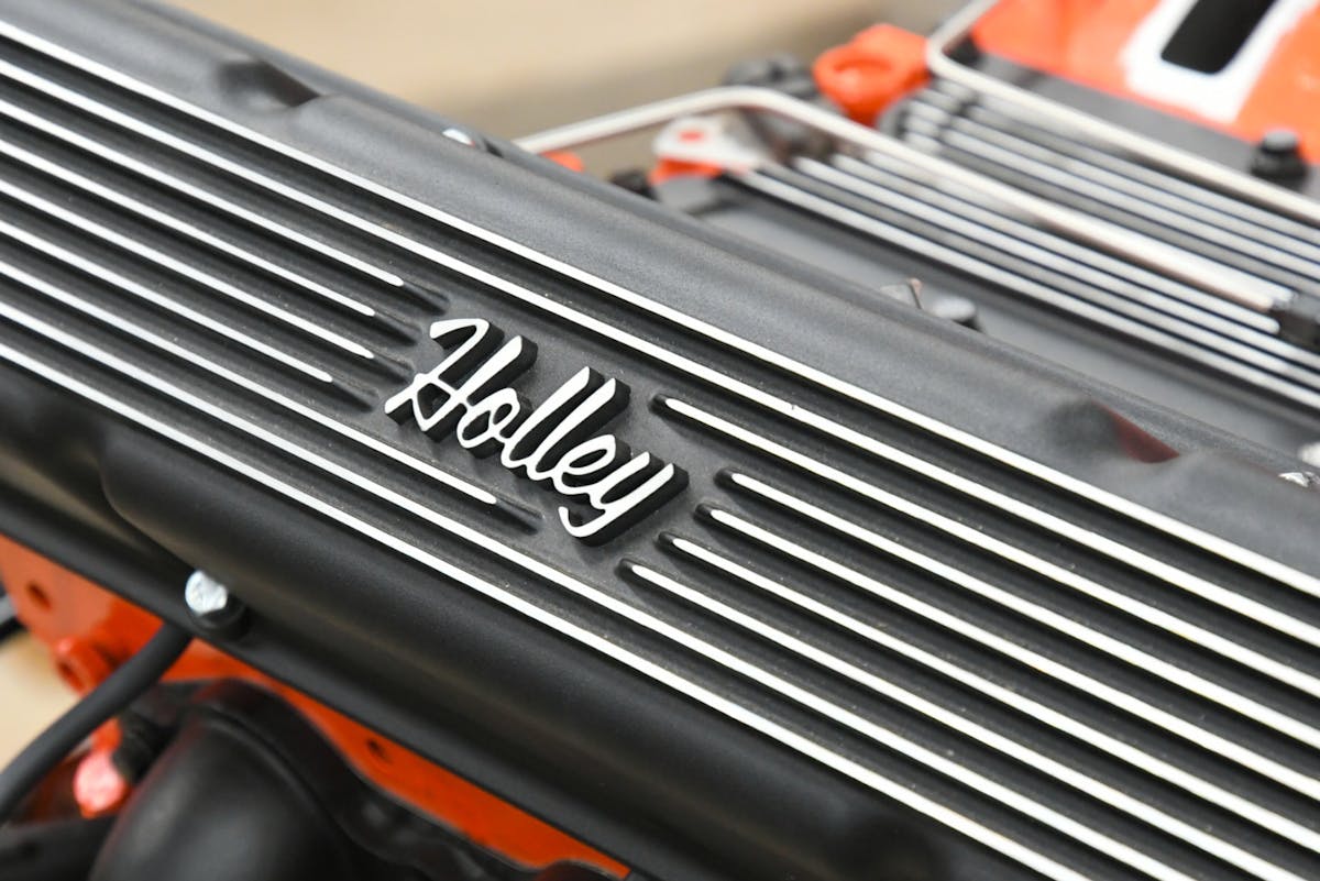Holley’s small-block Chevrolet valve covers add a vintage hot rod look to our LS and they match the valley cover as well.