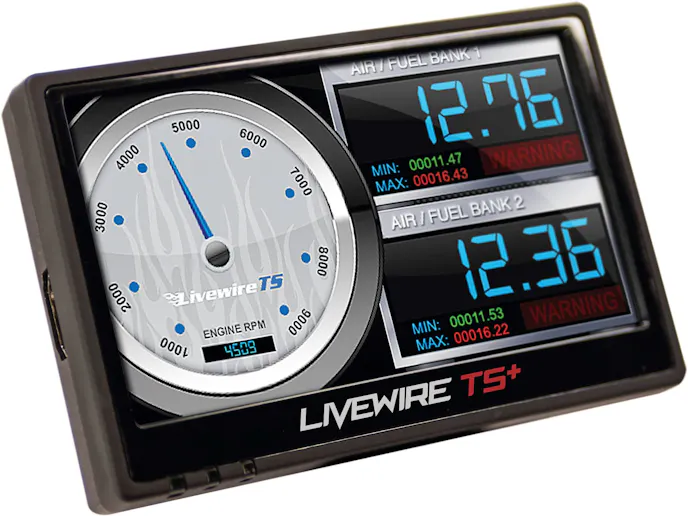 The Livewire TS+ arrives pre-loaded with dyno proven performance tune files and holds up to 10 custom tuning files for maximum tune flexibility. Switch On-The-Fly is available (for select vehicles only) on the Livewire TS+ and allows a user to change power levels while driving. Livewire TS+ also features a full color 4-inch touch-screen display with built-in ambient light sensor for automatic brightness adjustment.