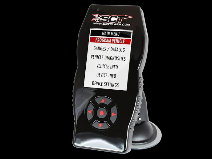 Some versions of this device do not come with any tuning (check your specific application). Tunes would then need to be purchased from an SCT Custom Tuner. The device backs up your factory program during installation should you ever need to return your vehicle to the stock program. Restoring your vehicle to the stock program is as easy as selecting “Return to Stock” from the device menu.