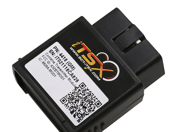 The iTSX re-calibrates the vehicle using bluetooth wireless. It is designed to work with iPod touch, iPad, iPhone and most popular Android devices. It is 50-state emissions legal and provides for monitoring popular sensor data via the analog input ports (optional analog input kit required).