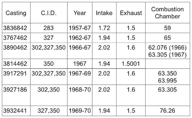 As these engine packages evolved and changed, so did the cylinder heads that were bolted to the blocks. With bore and stroke improvements came intake runner and valve size changes.