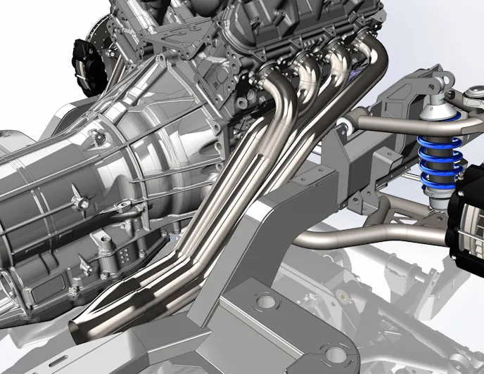 That’s a typically straight-forward endeavor when they’re working with production chassis and engines because that data is readily available, he notes. “Some of the car manufacturers will share that important data through SEMA’s tech repository, and that provides us with information about the dimensions of engine blocks, cylinder heads, oil pans, and so on. Once we plug that into Solidworks, we can start designing the header from the engine going forward.”