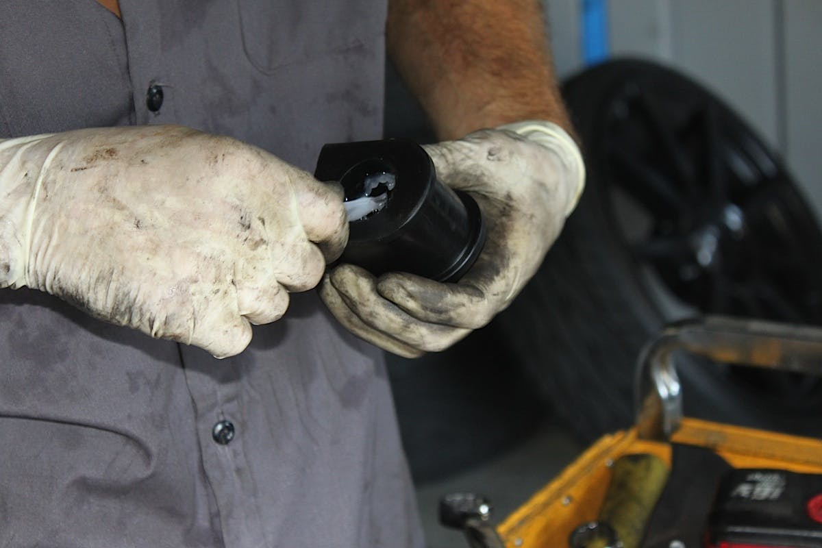 After the front factory bar and bushings were set aside, we prepared the installation of our thicker Hellwig bar. But before we could swap it in, it was necessary to prep the new bushings for installation. The Hellwig sway bar kit comes with all of the hardware, including the bushing lube. We applied the lube to the new sway bar bushings, making sure we coated them entirely. This prevents any unwanted squeaking from the sway bars as we take corners or hit bumps in the road.