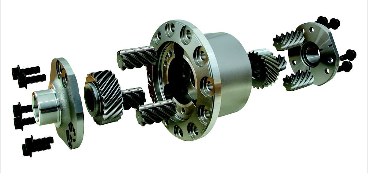 Inside the Truetrac are three sets of interlocking pinion gears that span from one main axle gear to the other. The gears will be completely locked up when both tires have the same amount of traction, but will still seamlessly allow the outside wheel to spin faster as the car goes through a turn on the street or a road course. No popping, clunking, or jerking. Check out the video below for a visualization of how the Truetrac’s helical gears operate.