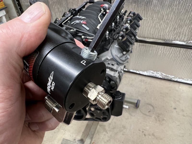 With the solenoids in place, one of the last steps is to attach the stainless steel hard lines supplied in this particular kit. Before you do that, go ahead and install your jets. We don’t recommend waiting to do this step. There are plenty of nightmare stories about people waiting to install the jets until they get the lines run and then forgetting to install them. With no jets in your system, there is nothing to regulate the amount of nitrous or fuel being supplied to the engine. Too much nitrous results in a lean mixture that can cause catastrophic engine failure. Waiting to install the jets can also result in forgetting the correct size to install and the same catastrophic failure is possible. It’s safe to say that we definitely recommend installing the jets before routing the lines for these reasons. Nitrous Outlet includes all of the information you need on the jet card to determine what jetting is best for your needs.