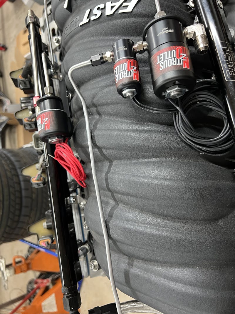 - Wet System: In a wet setup, both nitrous oxide and additional fuel are sprayed simultaneously. The ratio of nitrous oxide to fuel is controlled by the jets. One jet regulates the amount of fuel sprayed and the other regulates the amount of nitrous oxide sprayed. This can help prevent running lean and damaging the engine.