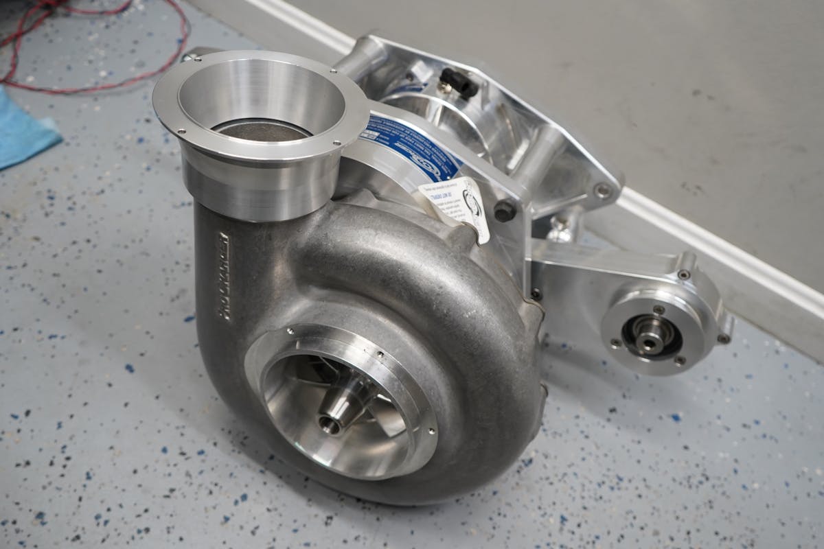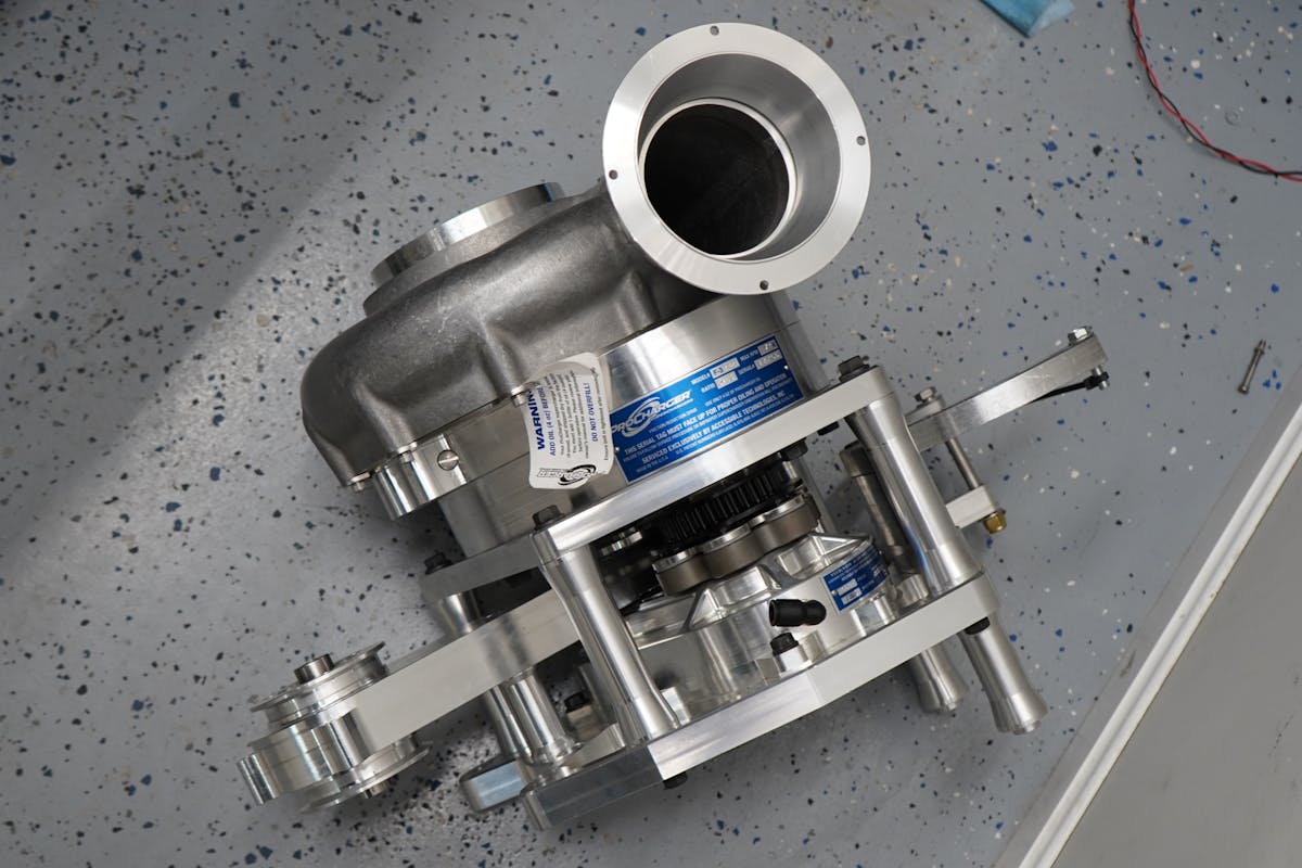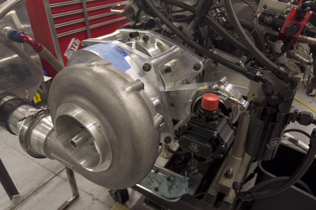 The ProCharger F-3R-121 is rated at 3,100 cfm, a max boost pressure of 40 psi, and a max horsepower rating of 2,400 horsepower. The F-3 series offers a CNC machined 7075 aluminum billet impeller measuring 4.4 inches at the inducer and 6.75 inches at the exducer. The F-3 transmission has a 5.63:1 step-up ratio and is built with heavy-duty 9310 steel shafts and gears with a patented high-speed compound bearing design that can handle the high speed and excess loads a racing supercharger churns out.