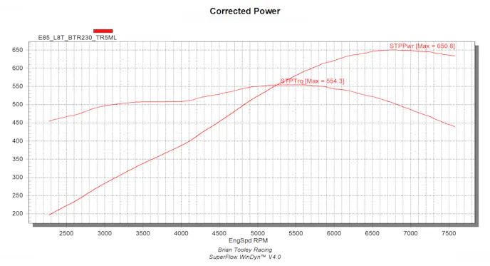 By the end of our camshaft shootout, this L8T was pumping out an impressive 650 horsepower at 6,800 rpm and 554 pound-feet of torque at 5,400 rpm while still sporting stock heads.