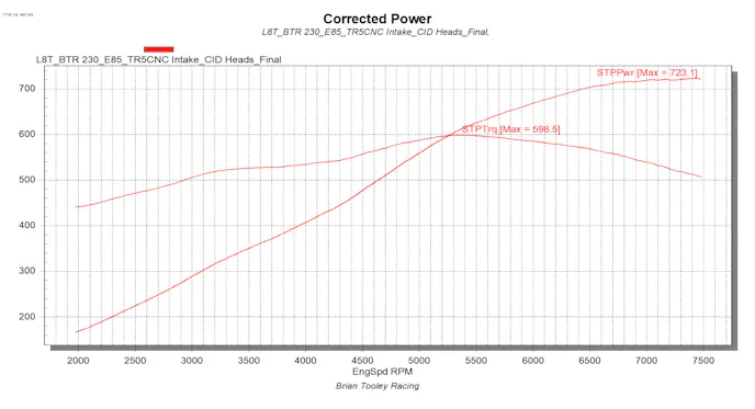 A pinch of extra compression and a few extra CFM helped the CID heads edge out the highest numbers at 723 horsepower at 7,400 rpm and 598 pound-feet of torque at 5,400 rpm.