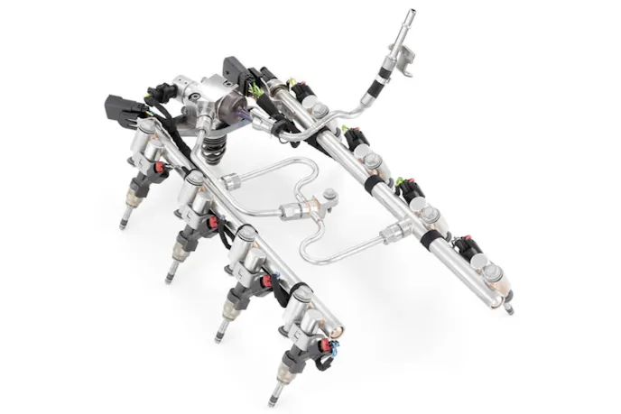 To combat the high cylinder pressures that occur in an internal combustion engine, a direct injection (DI) system has to run at a much higher pressure than the normal 43psi or 58psi of a port-injected system. Thanks to a high-pressure mechanical fuel pump that is driven by a triangle-shaped lobe off the back of the camshaft, the direct injection system runs at 2,175psi in the L8T and up to 2,900psi for the LT4 supercharged engines.