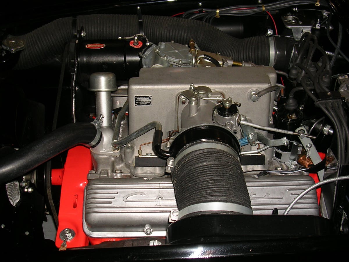 Look closely at this first-model-year fuelie and you can see the tachometer was actually driven off the back of the generator. You can see the mechanical-tach-drive cable routed from the generator through the firewall.