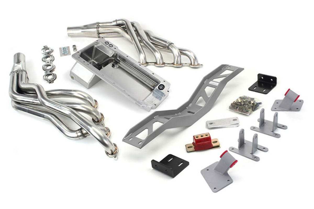 “Oil pans are an example; most swaps make use of three or four different pans regardless of chassis,” Maney says. “Other things, like engine mounts and transmission crossmembers, tend to be chassis-specific. Headers are somewhere in the middle.”