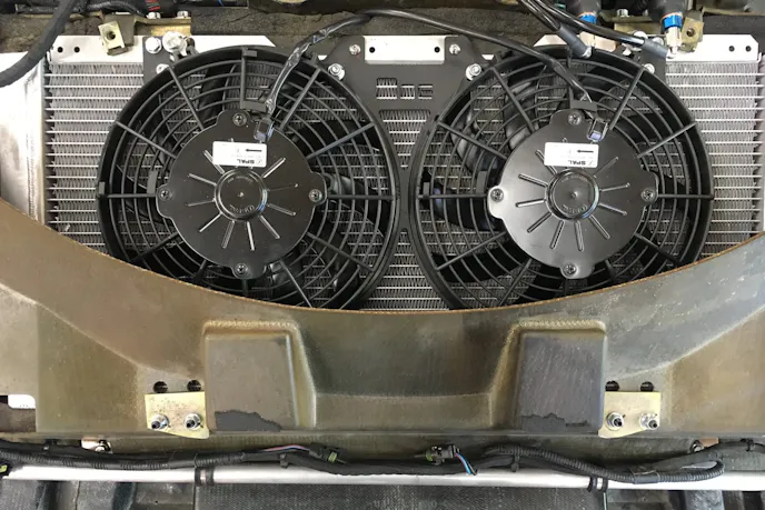Electric fans are the way to go if the budget allows. This setup saves weight, reduces parasitic power losses, gives you a little fuel mileage back, and typically is more compact for tight-fitting LS-swapped engine bays. But not all fans are created equal. Cheap fans from your favorite overseas mail-order website are made with inferior motors and blade designs. And most of the time, they have been caught greatly exaggerating their CFM capabilities.