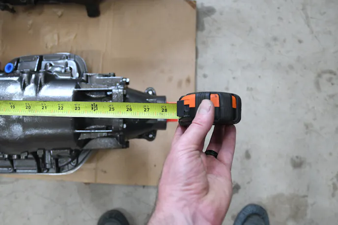 The 4L60e and the TH400 have their differences, as you can imagine. You would expect the modern four-speed to be larger and heavier than the TH400, however, we were surprised at how similar these two units are. The 4L60e weighs 133 pounds without transmission fluid, and the TH400 tips the scales at 134 pounds. A 4L80e weighs in at a hefty 178 pounds. The 4l60e, which measures 30.75-inches, is a little longer than the short tail TH400 at 28.25-inches. As you might expect, the 4L80e is the longer of the three transmissions, with a length of 32.187-inches.