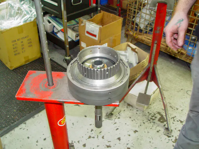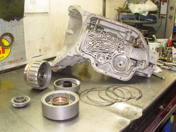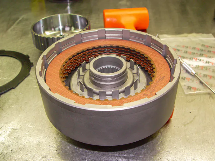 “Many internal parts in the TH400 are very heavy-duty from the factory, and the ones that are not, are replaced by aftermarket parts. For this build, we replaced the factory second gear sprag with a 34-element cam-type sprag. The input shaft will also get an update with a Vasco 300 material shaft, and the forward clutch hub will be an aftermarket billet steel type. We will also use the Red Eagle style clutches, Kolene steels, and a Kevlar rear band.”