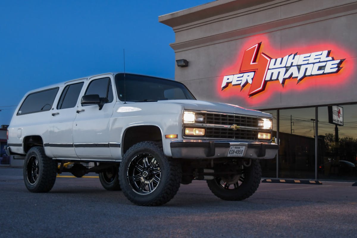 Since the swap, this now 30-year old vehicle has become one of our primary modes of transportation, as we use it daily. The only problem is that the 35×12.5×15-inch mud-terrain tires that were once tolerable on short commutes are no longer manageable. Call us old, but the cool “waaa-waaa-waaa” noise the tires make driving down the highway leaves a lot to be desired. You can’t talk to the co-pilot on a road trip, listen to the radio, or even hear yourself think. The good news is that a new set of tires can remedy this problem. Sure, we could have just put new tires on the “old school” 15-inch wheels, but the wheels are pretty beat due to off-roading. So, the hunt was on for a new set of tires and wheels for the Suburban. The only problem is, there are so many choices nowadays, with thousands of options to choose from, that it’s hard to choose just one.