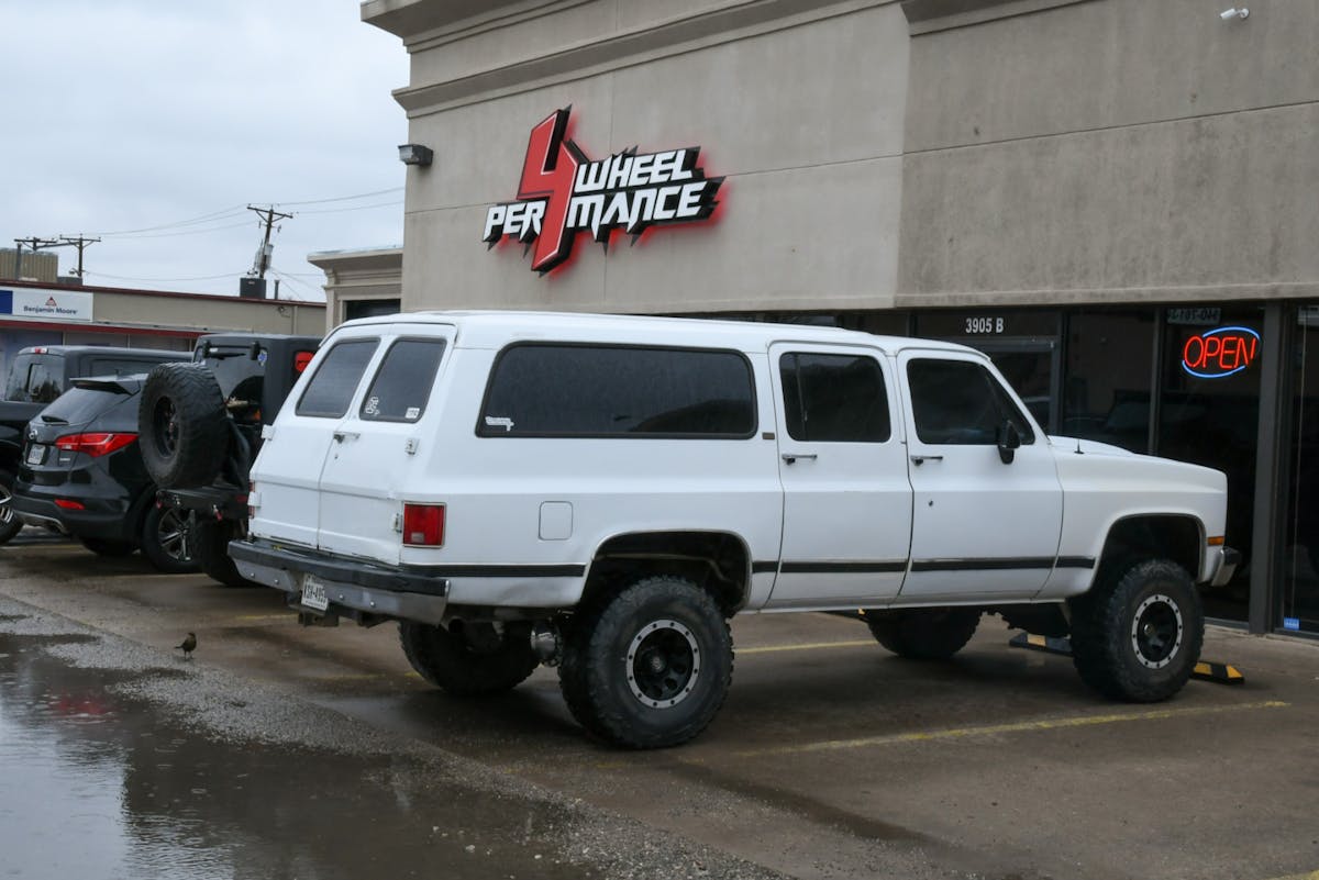 With the ‘Burb in the 4WP parking lot, we took a minute to check out the new 20-inch setup. And to be honest, we were a little nervous about putting a 20-inch tire and wheel on the Squarebody, and we were hoping it wasn’t a mistake. But after looking at it, we think the Weld Chasm’s and 35×12.5×20-inch Mickey Thompson’s look stellar. And our thoughts have been confirmed with cash offers on the truck and countless thumbs up as we cruise around town.
