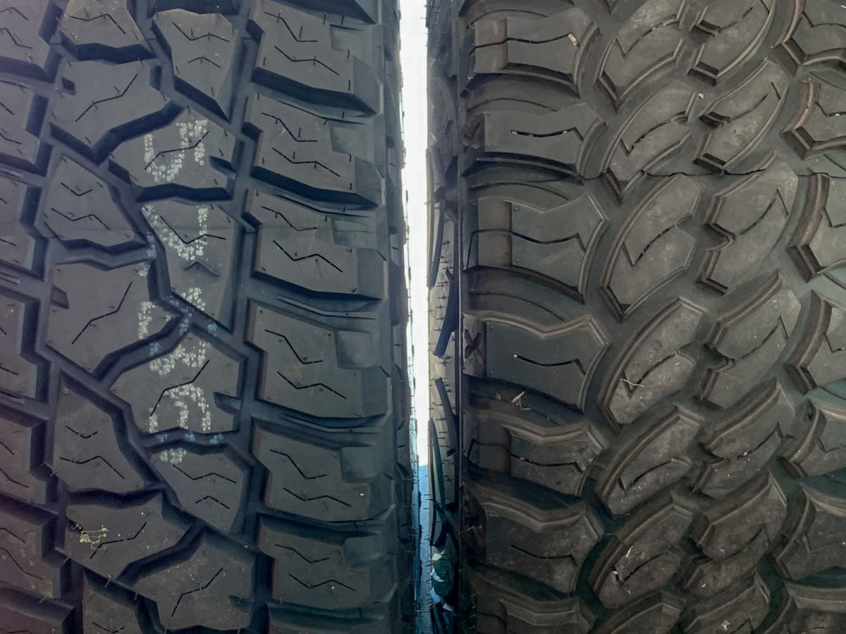 So now we know why our mud-terrain tires were so loud after looking at them: the void between the tread is almost as large as the tread itself, resulting in the unbearable noise level at 75 mph on the highway.