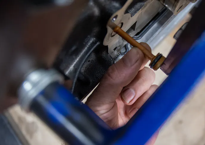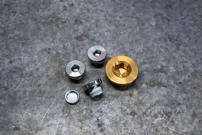 There are several ways to remove the plastic oil galley plug. We were able to pop ours out with a small screwdriver. If that doesn’t work, people have used pliers and even a self-tapping screw. With the OEM part out of the way, we put some oil on the o-ring and slid the new plug into place. Make sure the rounded end goes in first. We then put the rear cover on.