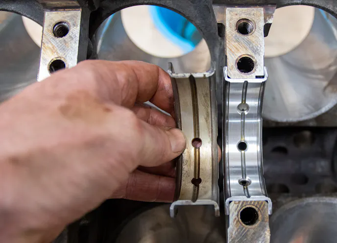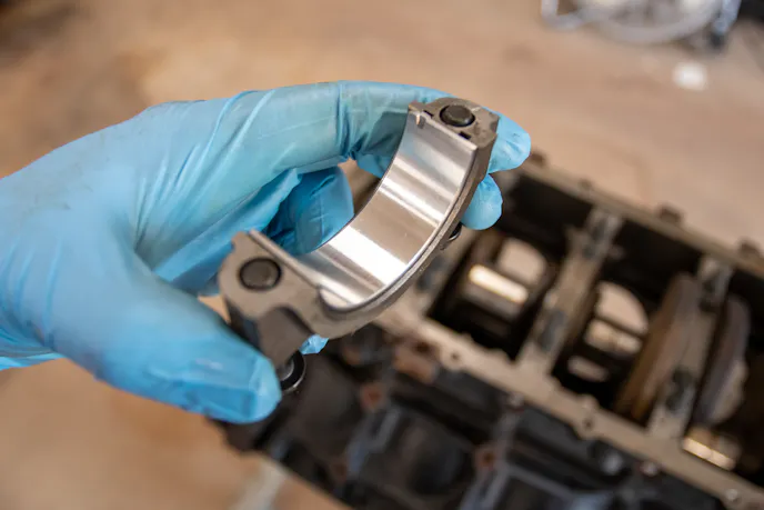 For this project, we used King’s SI Series rod (PN CR807SI) and main bearings (PN MB5293SI). The SI series is a direct replacement for the OEM bearings but offers an improved finish, reducing microscopic ferrite peaks on improperly ground or polished nodular cast iron crankshafts. These rod bearings also offer improved oil clearance to minimize wear and increase engine life. The SI Series bearings are of high quality and very affordable.