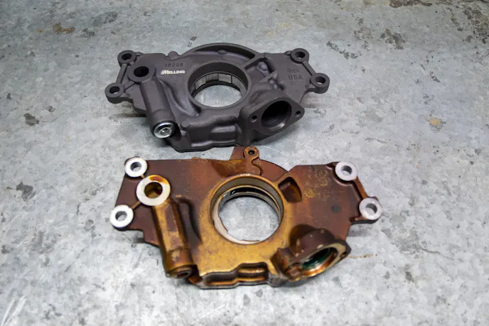 “A high volume oil pump will provide more oil flow to the engine across the engine’s operating range, from idle speed to red-line. Any modifications that will increase the engine’s demand for oil will require a high volume pump. So an engine with larger bearing clearances, higher flow rate lifters, added piston and valve spring oilers is a good candidate for a high volume oil pump,” Osterhaus explained. “In comparison, a high-pressure oil pump will supply additional oil flow at higher engine speeds due to less oil passing through the oil pump’s internal pressure relief circuit. Many factory-stock performance engines came with standard volume high-pressure oil pumps.”