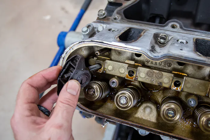 As we tore the engine down, everything looked surprisingly well on the 175,000-mile Tahoe powerplant. First, we pulled the intake and then removed the harmonic damper using a tool we purchased from ICT Billet. Then, we pulled the factory intake, valve covers, rockers, pushrods, and lifters. Finally, it was time to get the heads off and inspect the tops of the pistons and cylinder walls, which looked good.