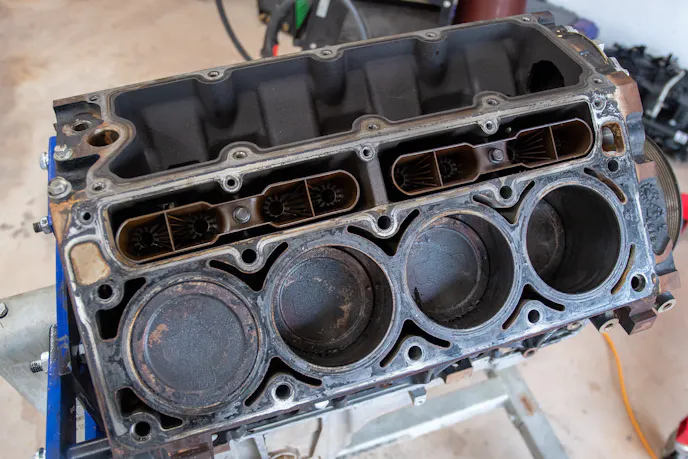 For this article, we didn’t want to get into machining and build a completely new engine, so we aborted the rusted one and picked up another Gen III 5.3. And that’s part of the beauty of the truck engines: they’re a dime a dozen. While our new engine looked much worse on the outside than the previous one, we were hopeful that the internals would look better than our first option.