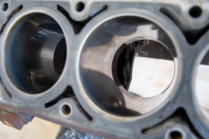 With the drain plug removed, water – yes, you read that right – flowed freely out of the pan, followed by some black gunk that vaguely resembles oil. At this point, we figured we might be in trouble, and our suspicions were right. After we tore the engine down, it was evident that the number six cylinder had seen better days and would need to be bored.
