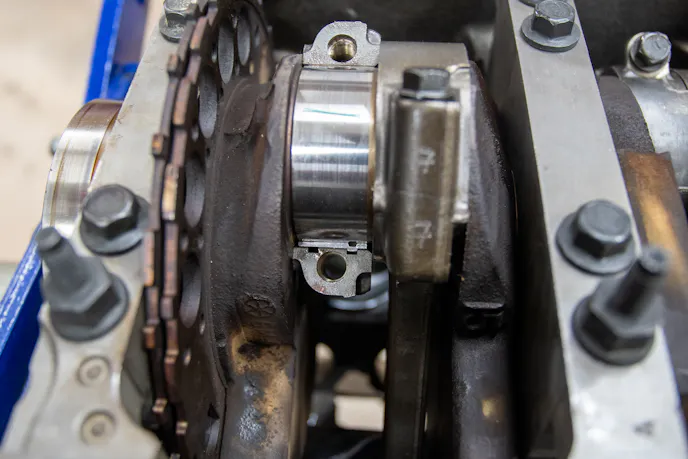 You might be wondering why we choose to use OEM bolts for the bottom end of this engine. It’s pretty simple: since we were doing a junkyard rebuild, we tried to keep costs at a minimum, and changing bolts would have changed the clamping force. When this load changes, the rods and mains need to be aligned-honed by a machine shop to make them round again. This engine was never intended to be a high-horsepower build, so we didn’t see the point in additional machining that wasn’t required.