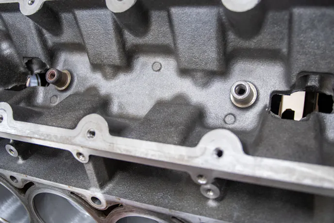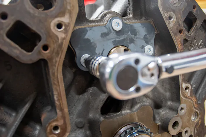 Before installing the back cover, you will want to change the oil galley plug or “barbell” and the expansion plugs. For the extraction of the plugs, you will need an 8mm and a monstrous 17mm hex wrench. Our plugs weren’t that hard to remove, surprisingly. Melling’s engine block plug kit (PN MPE-900BR-GP) includes all of the plugs and the oil galley plug, as well.