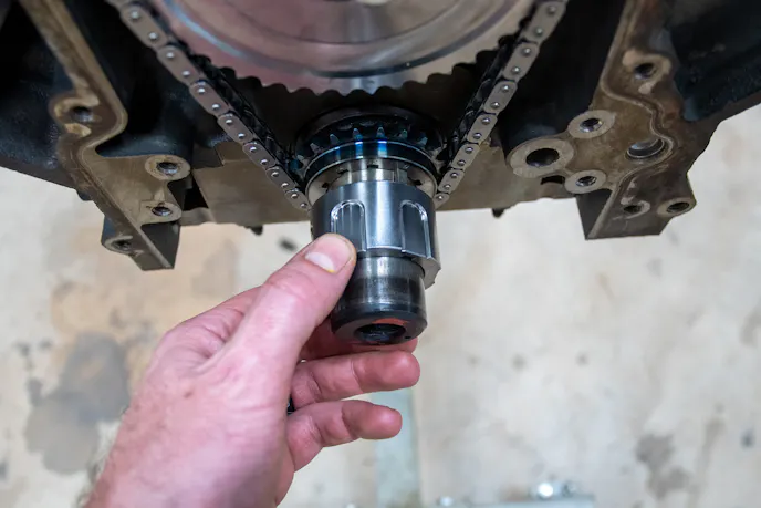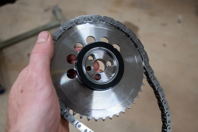 “Timing chains stretch over time, and the most significant risk would be chain breakage. A stretched chain can also affect the base timing, which can hurt performance,” Osterhaus explained. “Our performance timing set features superior materials, like billet steel instead of cast iron or powdered metal. Many will have a multi-key crank sprocket, heavy-duty seamless roller chains, and, depending on the set, a thrust bearing or washer.”