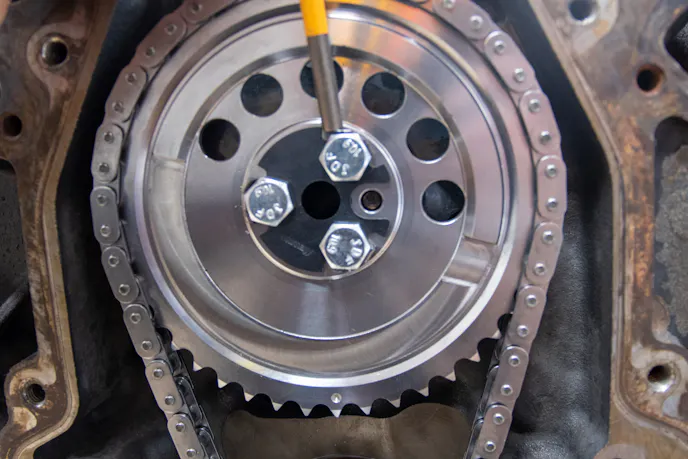 Melling’s timing set for our application (PN 48560T-9) included all of the options and was easy enough to line up and install on the 5.3. We then used the cam bolt locking plate (PN 5461-LPK) to make sure the bolts would not come loose until we were ready to pull the cam.