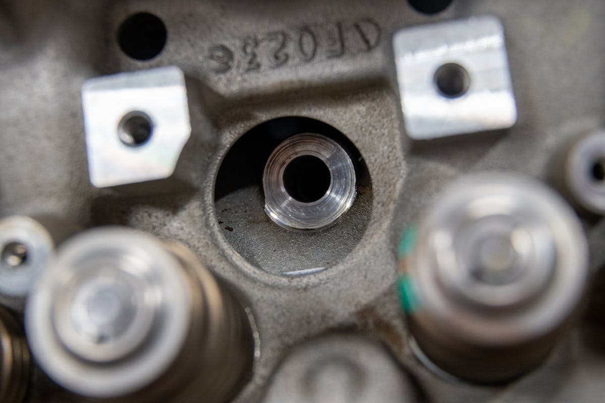 After we had the surface of the heads cleaned up, we then moved our attention to the combustion chambers. The easiest way to tackle the carbon build-up here was to spray the Scotch-Brite pads with brake cleaner and scrub each chamber down until you’re happy with the results. This process takes a while but is relatively easy and nets good results.