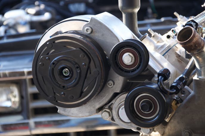 Holley offers an excellent conversion (PN 20-140) that uses the factory-style ’91 Suburban R4 compressor. This kit does a couple of things for anyone doing an installation on this model truck. First, it allows you to use the factory A/C lines and hardware without needing to modify anything, and mounts in the factory location. Second, you can run all of the factory LS accessories with the OEM mounts. Since we already had everything we needed with our 2004 LS junkyard motor, we were able to save some money and get the A/C compressor and bracket. You will need to order (PN 21-3), as well, if you use your existing truck accessories. A complete accessory drive like (PN 20-136) can also be used, which includes brackets, power steering pump, alternator, and A/C compressor.
