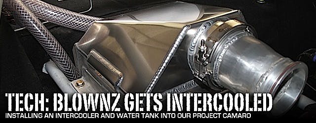 As we’re winding down on the completion of BlownZ, we’re still in the process of fine-tuning, tweaking and getting our Camaro track ready. That includes buttoning up the intercooler assembly, hooking up the water tank, connecting the fuel lines, cooling lines, and all of the piping. With the massive ProCharger forcing oxygen into our 388ci. LSX stroker, we’re going to need an intercooler than can keep up with all of that horsepower.