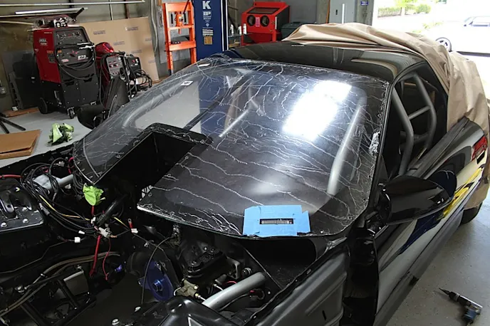 Being as how BlownZ is no longer a street car, the factory installed safety glass is just added weight. We decided to replace the heavy front windshield and rear hatch glass with Five Star Bodies composite windows. This decision is an obvious one, as safety and performance need to go hand in hand when building the perfect race car.