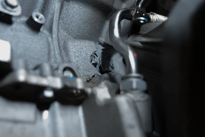 When House of Boost got into the car, they found a huge hole in the passenger side of the block. Cylinder number six’s plug and rod had left the chat. We first thought the exhaust leak may have reached the knock sensor on the passenger side since it was melted. But there is a heat shield on that sensor. It is also possible that a lifter caused the engine to lock up. The exiting piston may have gotten oil on the knock sensor and caused it to short-circuit and melt. We were not entirely sure. Then, House of Boost looked at the tune files and found 27-plus degrees of timing at 4,000 rpm on pump gas. They labeled it God’s tune. That explained everything. We are replacing the headers as part of this build, too, just to be safe.